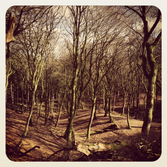 …og så går jeg selvfølgelig i strålende sol og forår som her i dag i Troldeskoven i Rold Skov: